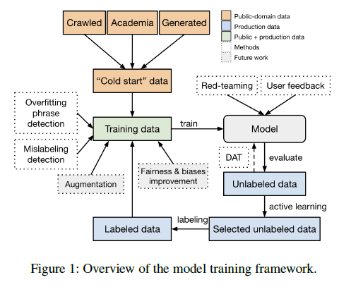 - A practical moderation system needs to process real-world traffic. Thus, a model bootstrapped from public data or academic datasets would not work well.